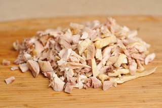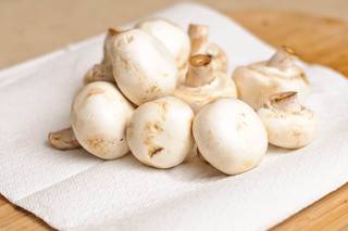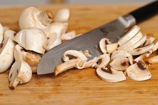 العمل علي تقطيع الدجاج الفليه إلي قطع صغيرة، وغسل الفطر جيداً وتجفيفها جيداً علي منشفة وتقطعه إلي أجزاء صغيرة .